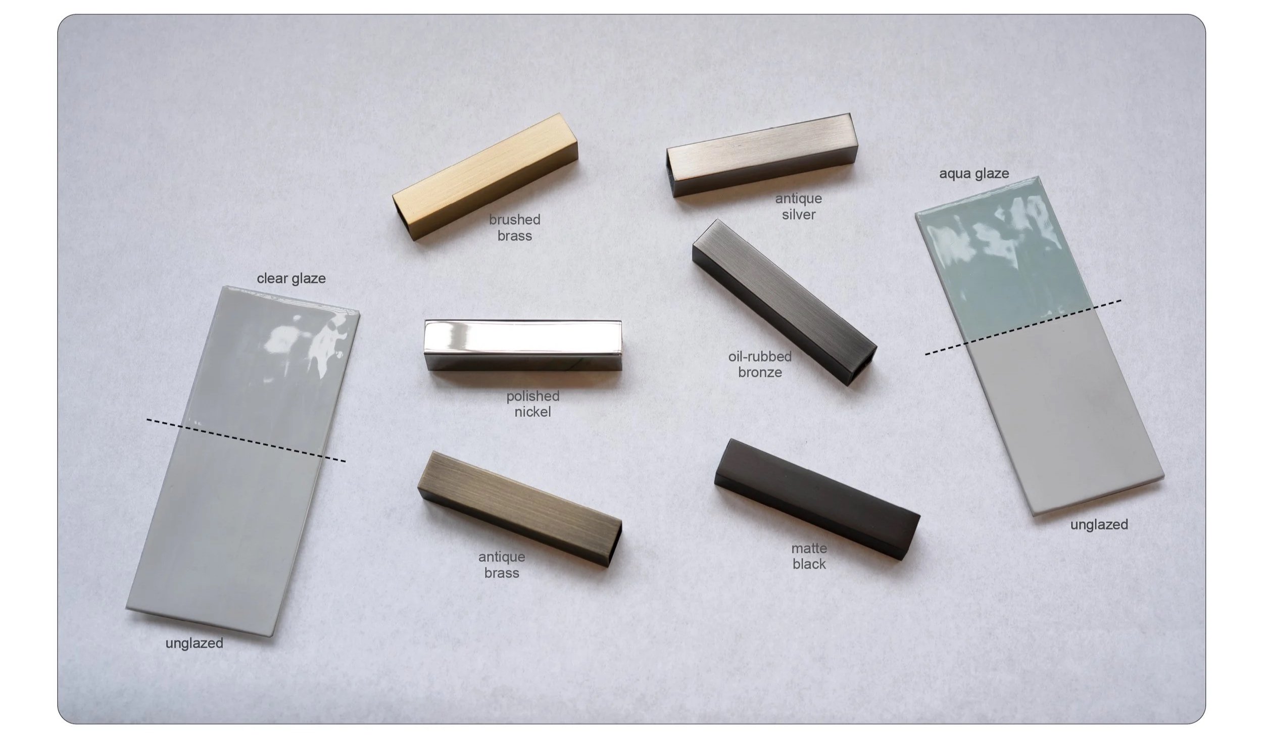 Additionally, we can provide powder coating in any of the RAL color, or other metal finishes if you have a sample to match. Nickel and Etched finishes are special order. Etched and Etched & Patina are special “Claire Concepts” one of a kind finishes.